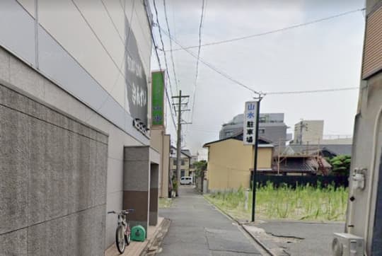路地に入ったら、ひとつめの四つ角を右へ曲がる。