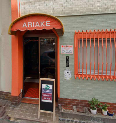 進んでいくと、右手にソープ店「ARIAKE」があるので右に曲がり細い路地を進んでいく。