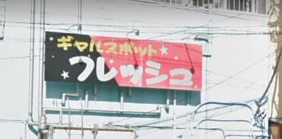 その道を進むと右側に「ギャルスポットフレッシュ」という風俗店の看板が上部にみえます。