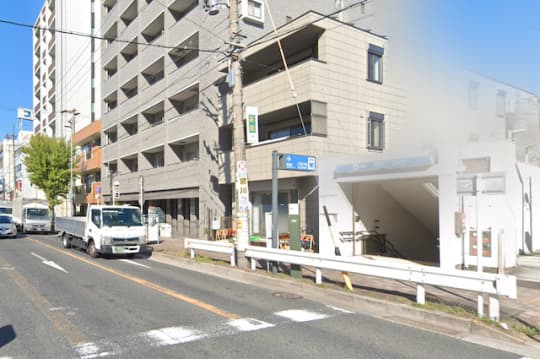 ①地下鉄東山線「亀島」駅で下車し、地上へ。