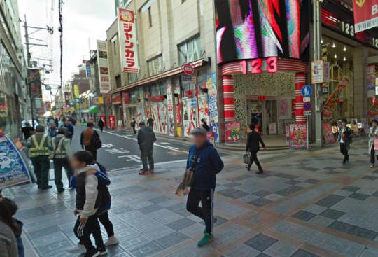 真っすぐ進むと左前方に「パチンコ123」が見えるので、左に曲がる。