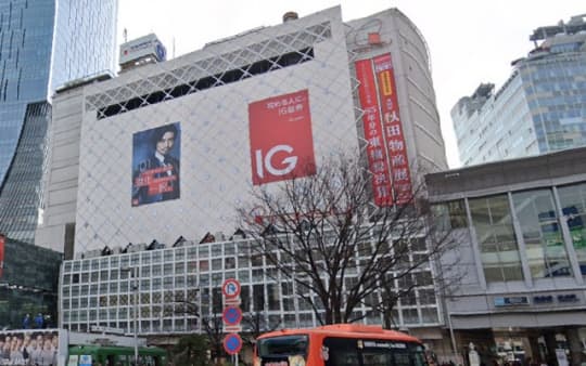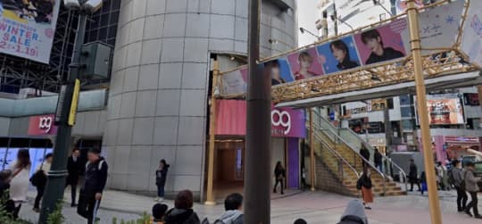 渋谷駅を左手に見ながら正面を見ると、前方には109が見えます。