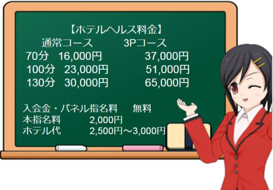 界隈の人妻ホテヘル店と比べると、平均からやや高めの料金設定だと思います。