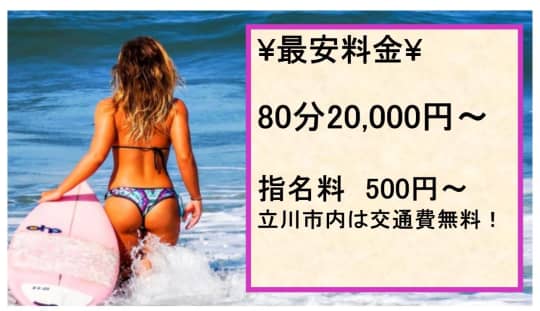 普通のデリヘルと比べるとちょっと金額は割高に感じるかもしれないけど、一番短くても80分コースからだし立川は交通費無料!
