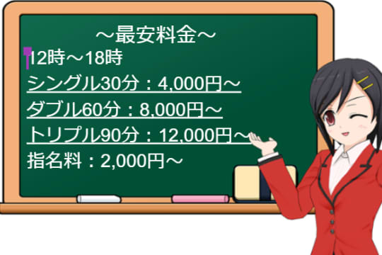 最安料金は12時から18時の間で、30分4,000円ですね。