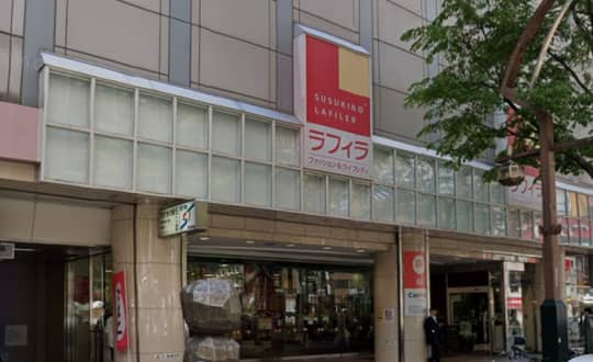 地上に出たら、ラフィラショッピングセンターの前に出るので、ラフィラを右手にみながら直進。