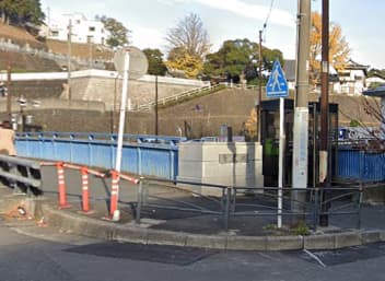 駅舎のすぐ裏手にある、手すりの青い橋が青木橋だ。