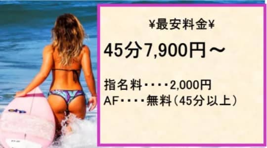そのため、AFを楽しみたいのであれば、45分7,900円のコースを選択し、別途2,000円の指名料を支払う必要があるっすね。