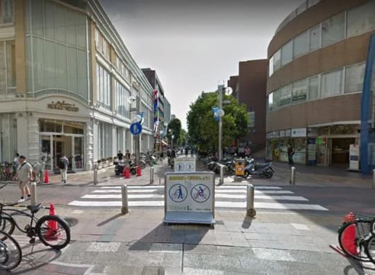 写真右奥、横浜市営地下鉄の伊勢佐木長者町駅を出たら、左手の道を真っ直ぐ。