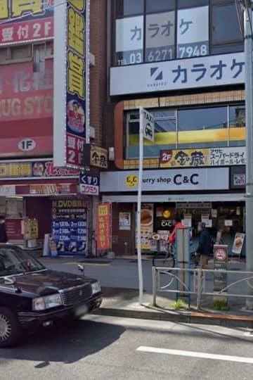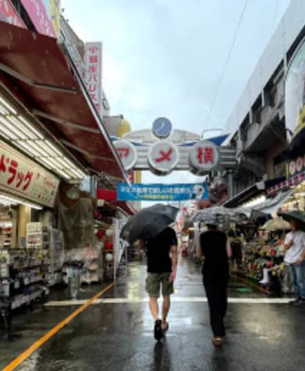 アメ横の入り口を左折する。一つ目の十字路にある洋品店前を右折する。