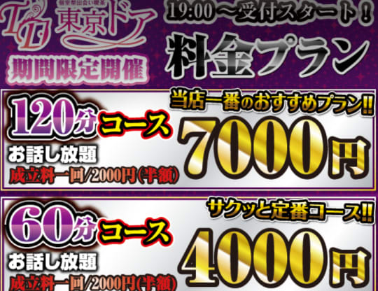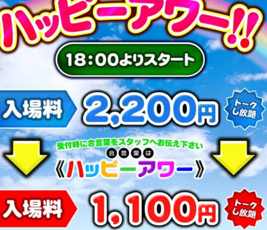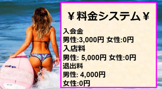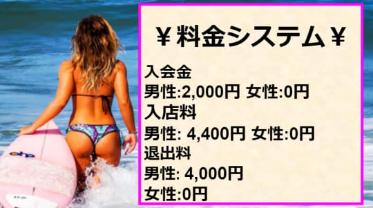 料 金 | 男性2,000円女性0円 | 男性5,000円女性0円 | 男性4,400円女性0円 | 男性4,400円女性0円 | 男性2,200円女性0円 |