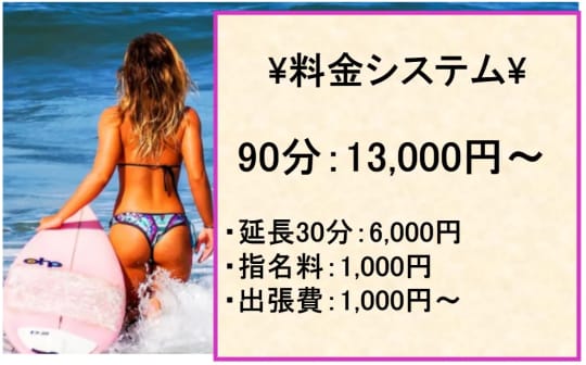 料金 | 60分10,000円~ | 60分11,000円~ | 90分13,000円~ | 90分12,000円~ |