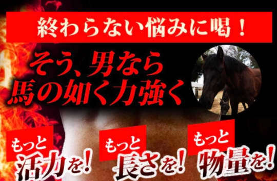 他社にはない馬成分で、みなさんも一緒に増大を目指してみませんか?