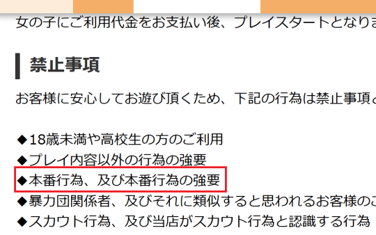 HP上にはこんな具合に、本番したり本強したりしないでといったことが書かれているはずです。