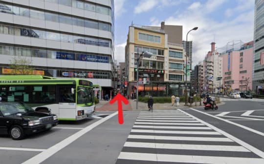 駅を出るとこのような交差点があるのですが矢印の方向に進んでいきます。